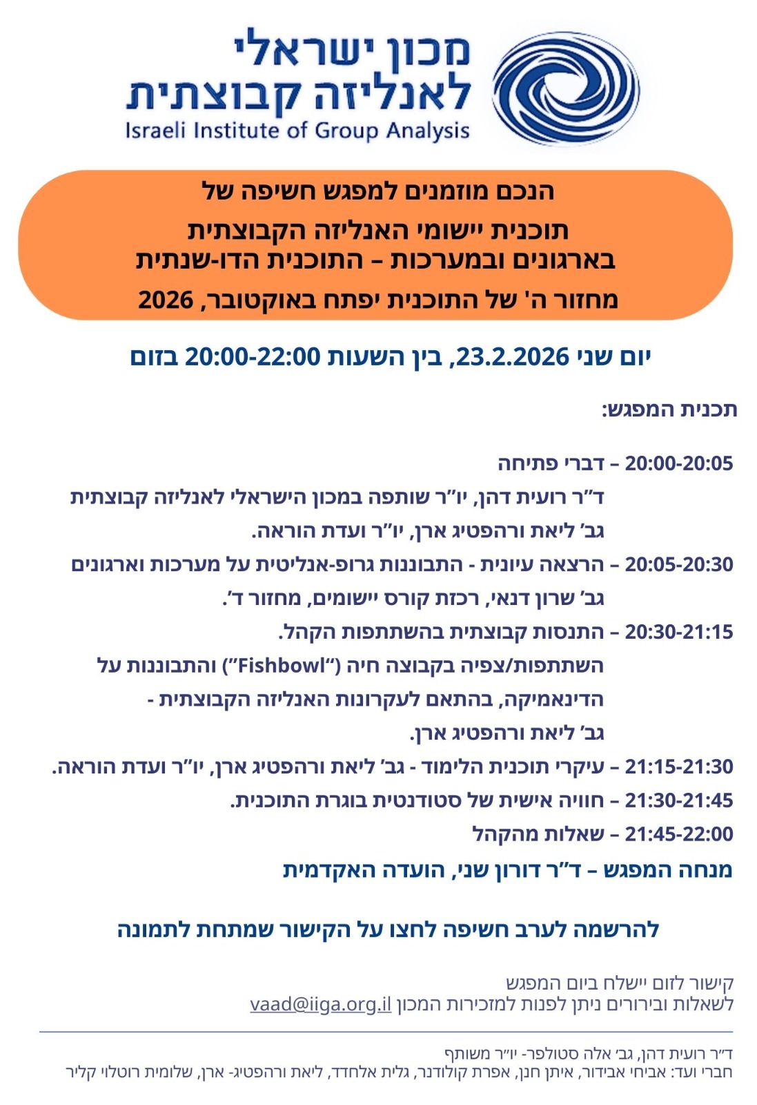 אנליזה קבוצתית: יישומים ארגוניים ומערכתיים. התכנית הדו-שנתית